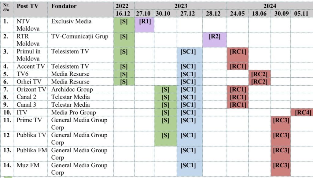 Ulterior, între decembrie 2023 și martie 2025, competențele extinse ale Consiliului au fost aplicate și altor furnizori media, dincolo de grupul inițial sancționat de CSE. În acest interval, CPPIIN a emis decizii de suspendare, retragere a licențelor sau înstrăinare a participațiilor pentru 21 de posturi TV și radio care nu fuseseră vizate în hotărârile anterioare ale CSE. Cele 21 de instituții sunt: Publika FM, Muz FM, Canal 5, Maestro FM, Radio Albena, Mega TV, Euronova FM, N/D, Datina FM, Drive FM, Noah TV, Romano Patrin FM, Art-T, Art-FM, ATV Coguk, Bugeac FM, ATV, N/D, TV Bizim Dalgamiz, N/D și TVC 21.
