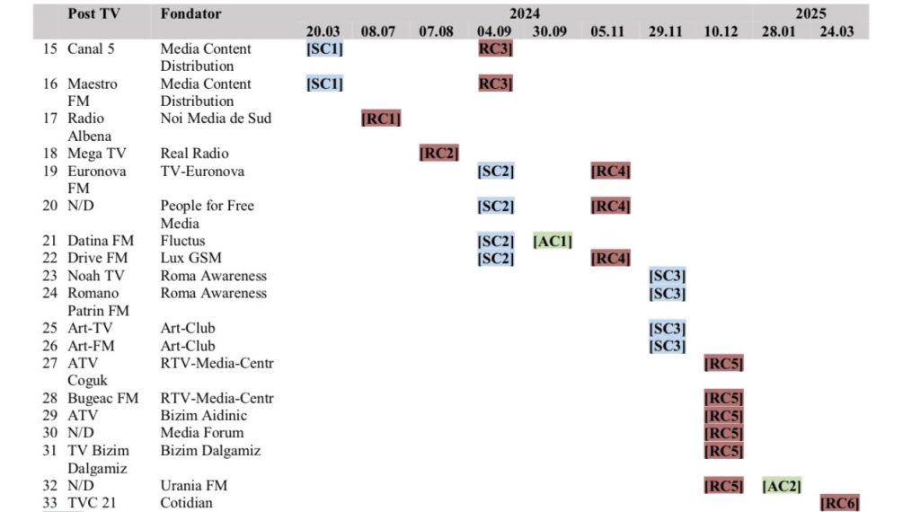 [Soluțiile aplicate în raport cu posturile TV/de radio vizate în dispozițiile CSE și/sau hotărârile CPPIIN // tabel din raportul CJI]