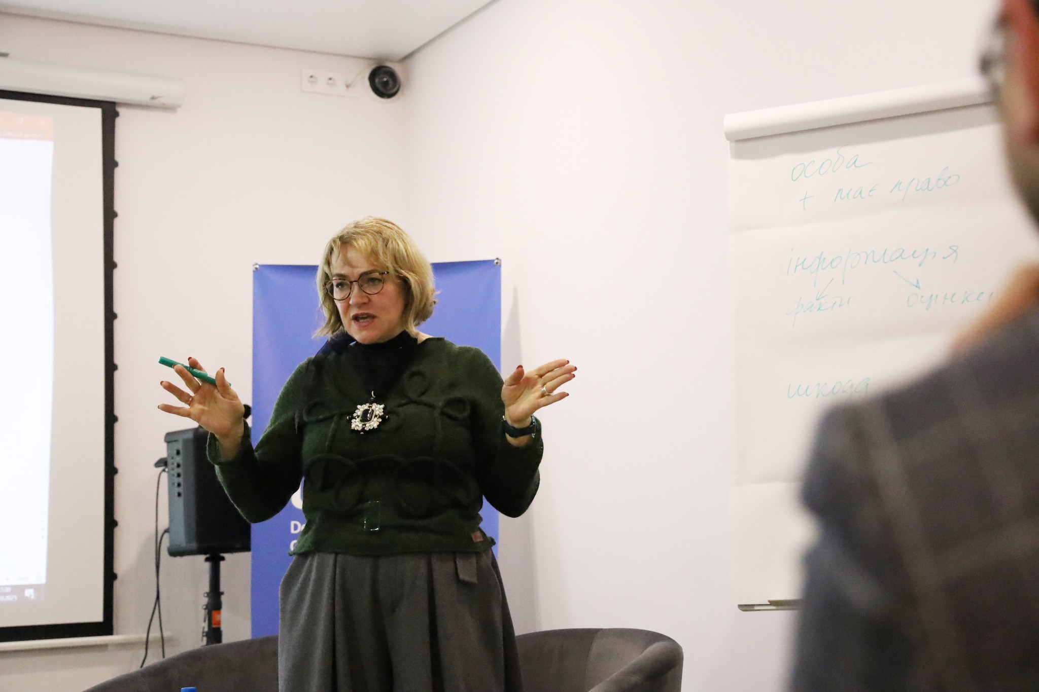 În ceea ce privește libertatea de exprimare, există câteva probleme. Trebuie garantat respectul pentru jurnaliști, independența și siguranța lor. Siguranța este problematică din cauza războiului. Tot mai mulți jurnaliști mor — nu doar pe linia frontului, ci și în urma atacurilor cu rachete. Protejarea jurnaliștilor este direct legată de protejarea tuturor civililor.
