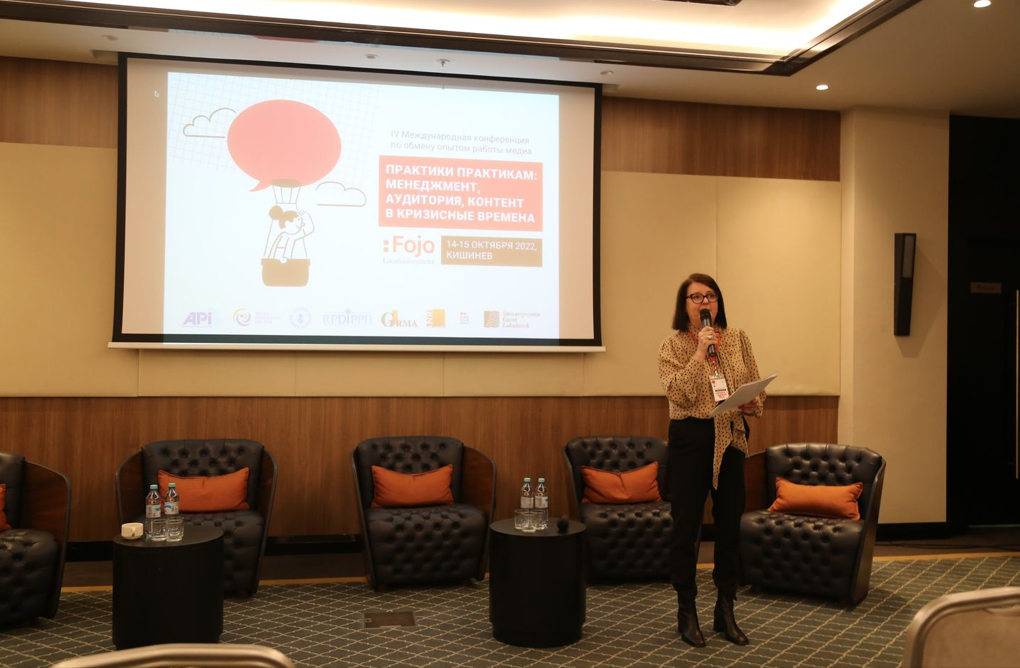 Conferința internațională cu genericul „Practicienii pentru practicieni: managementul, audiența și conținutul în timp de criză” s-a desfășurat la Chișinău pe 14 și 15 octombrie. Evenimentul a fost organizat de FOJO Media Institute din Suedia, partenerul său în Republica Moldova Asociația Presei Independente (API), precum și de partenerii FOJO din Ucraina, Letonia, Georgia, Polonia, Belarus, Rusia, Armenia.